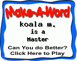 Posted by Uncle Sammy at 11:43 pmFinally. The very reason for my absence was of course to get time to play Make-A-Word! Prophecy fulfilled! I am a master! I must be somewhat awesome too! (Never mind that Koala is the Jebus of words or something like that.) My eyes are bleeding now so I guess I better go to bed. Good night everybody. Hopefully I'll see you again.